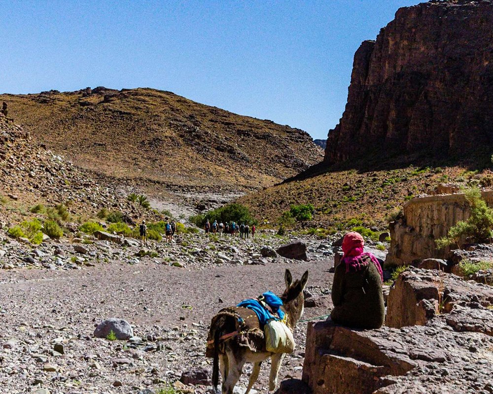 C’est à Foum-z-guid que vous retrouvez une petite route qui serpente vers le Nord. Passé Tazenakht, au pied de l’ancien volcan du Siroua, vous bifurquez pour passer une nuit chez l’habitant dans un petit village. Profitez de beaux moments de partage avec vos amis berbères ! Vous découvrez la culture du safran qui est la richesse de cette région.