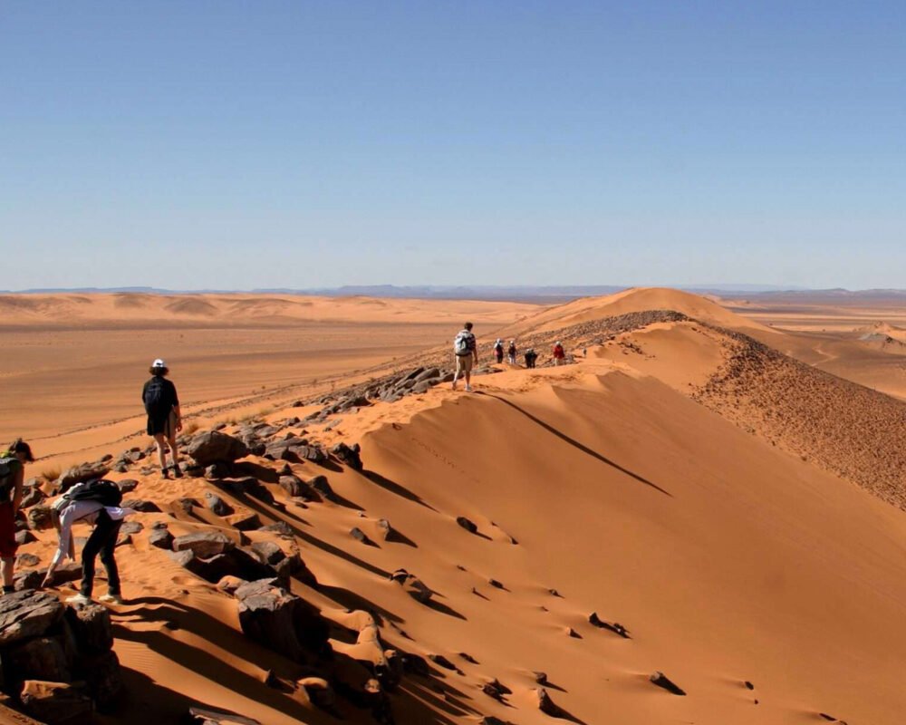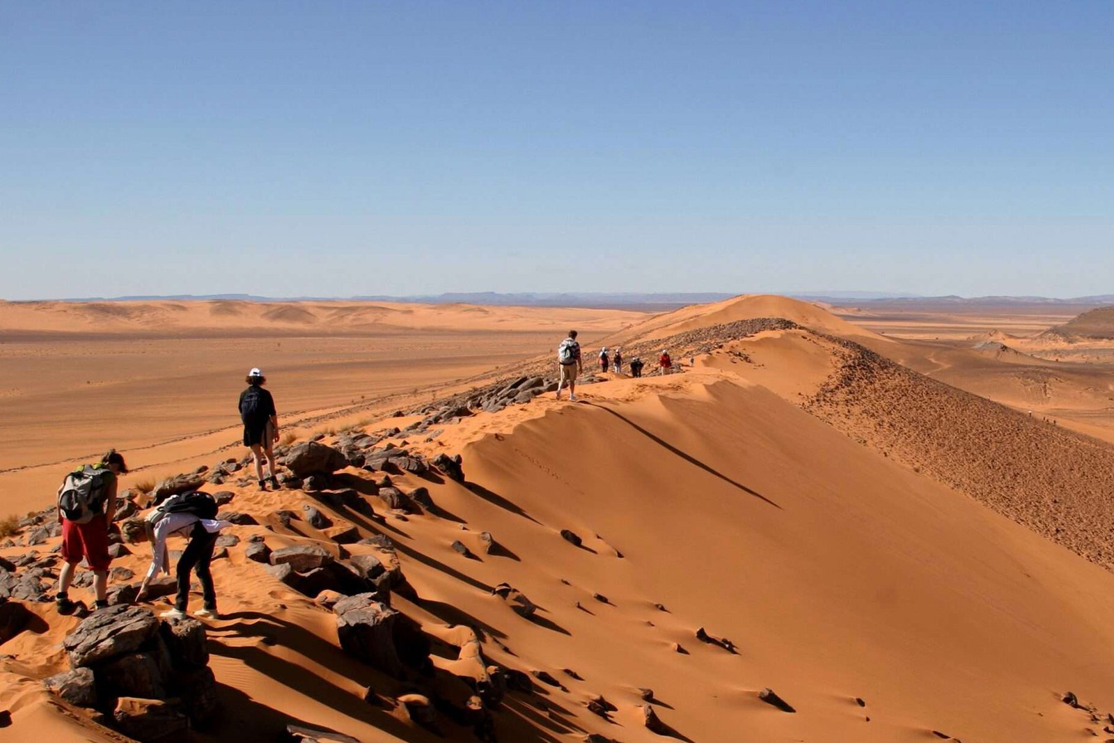 Une randonnée dans un désert très varié, minéral, minuscules oasis, dunes, nomades et au cœur des plus grandes dunes du Grand Sud Marocain. La descente entre Marrakech et le départ de la randonnée est une très belle découverte de villages, casbahs et paysages montagneux. L’équipe aussi fait partie de la richesse de votre voyage. Elle saura créer une atmosphère conviviale. Une très belle première découverte du Sahara.