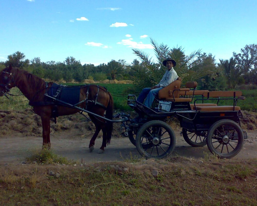 Profitez de la tranquillité de la calèche pour vous détendre, prendre des photos de souvenirs et admirer les panoramas à 360 degrés de la palmeraie. Laissez-vous bercer par le doux son des sabots des chevaux pendant que vous explorez ce trésor caché du Maroc.