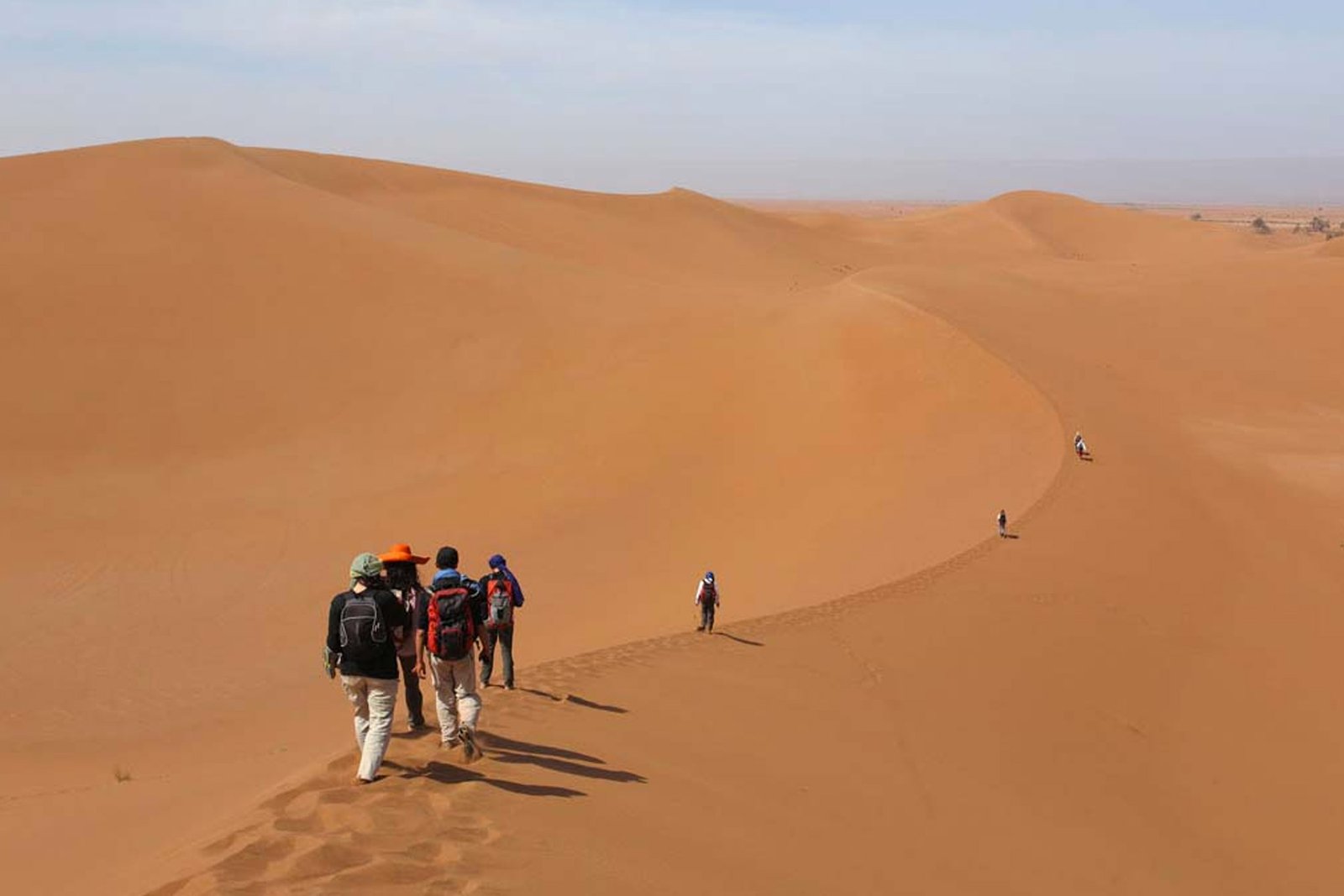 Explorez un désert varié, des oasis minuscules aux plus grandes dunes du Grand Sud Marocain. Rencontrez des nomades et découvrez des paysages montagneux lors de votre descente entre Marrakech et le point de départ de la randonnée.